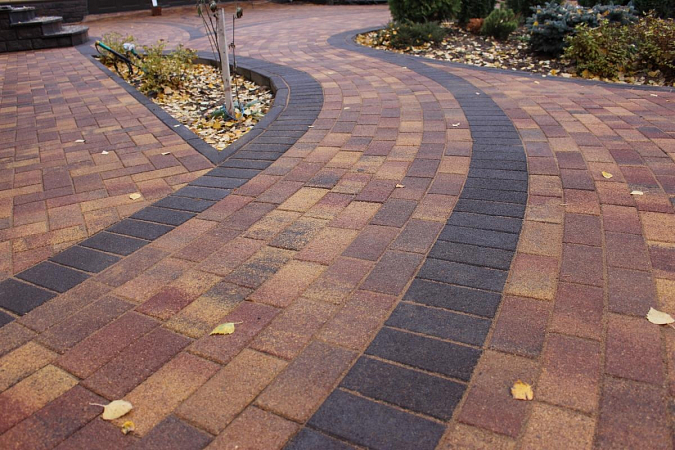 • Размеры тротуарной плитки в узоре мощения Разноразмерная